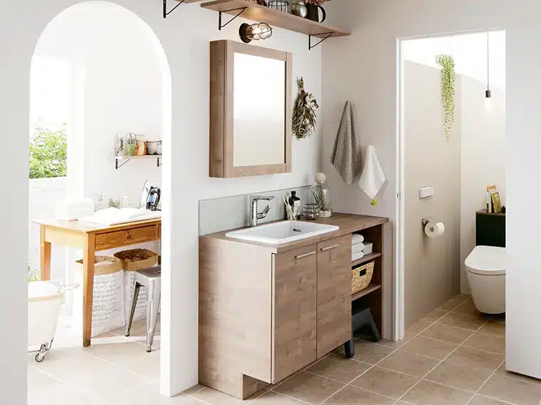 いろいろなスタイルの空間に溶けこむ洗面化粧台、まるで家具のようです。